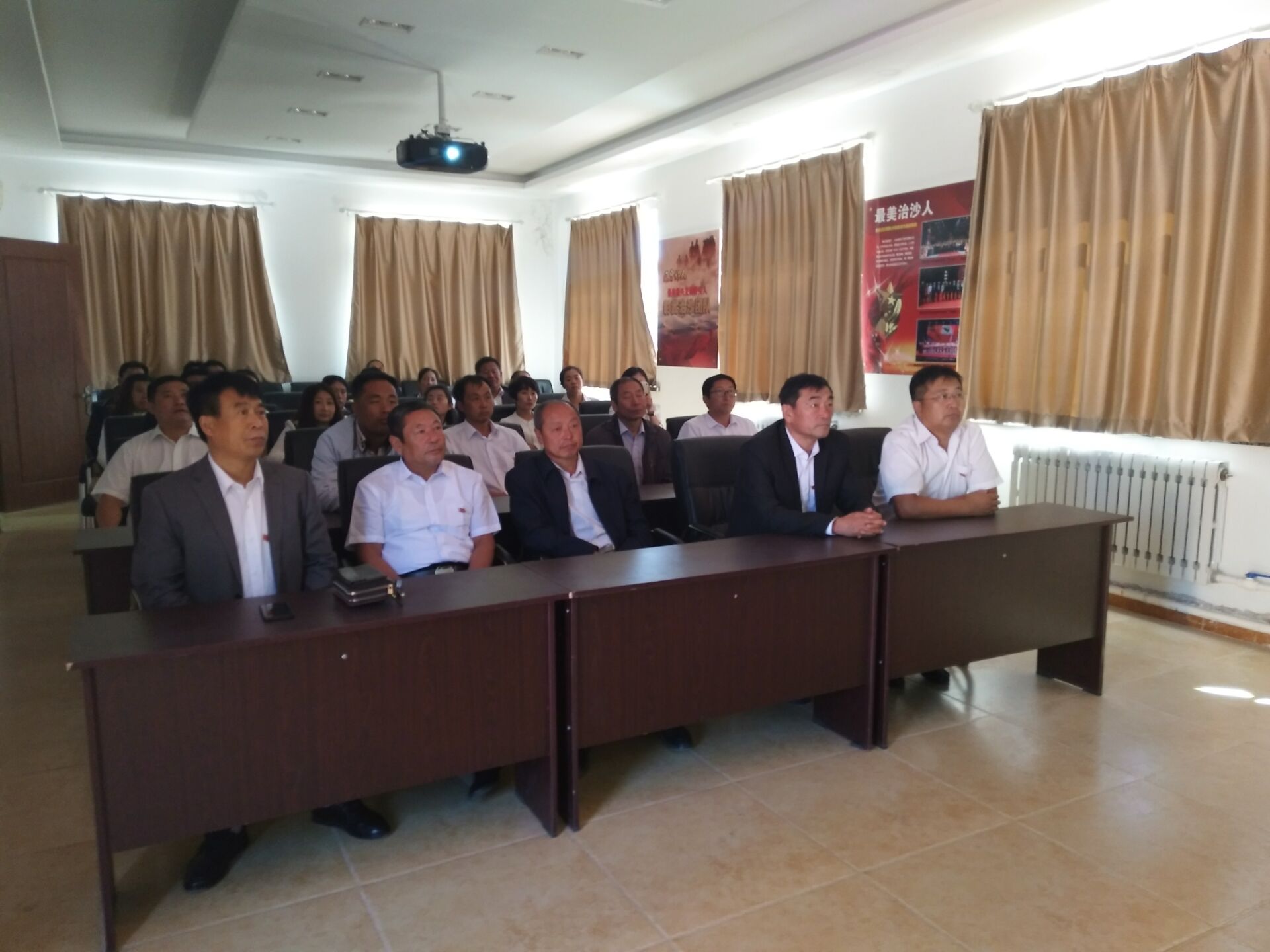 全体党员观看董福财的先进事迹