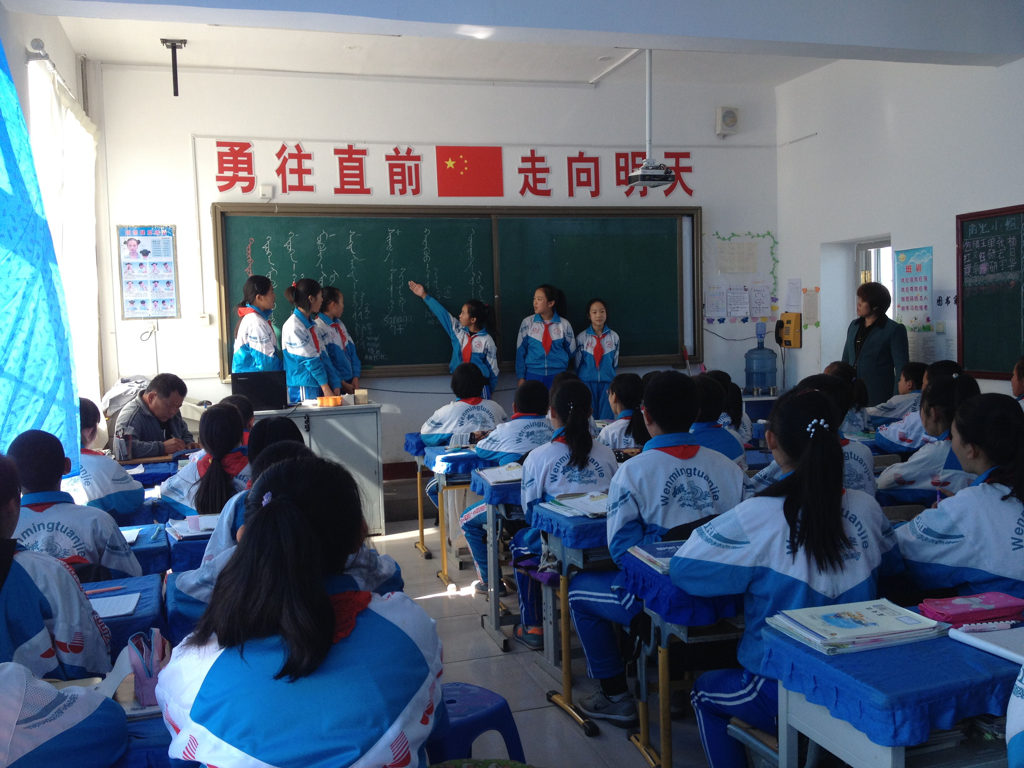 蒙古语文市级骨干何立军讲课 蒙古语文市级骨干包敬利公开课教学 教研员和教师听课观摩 学生汇报 小组讨论 (图片编辑:张云龙)
