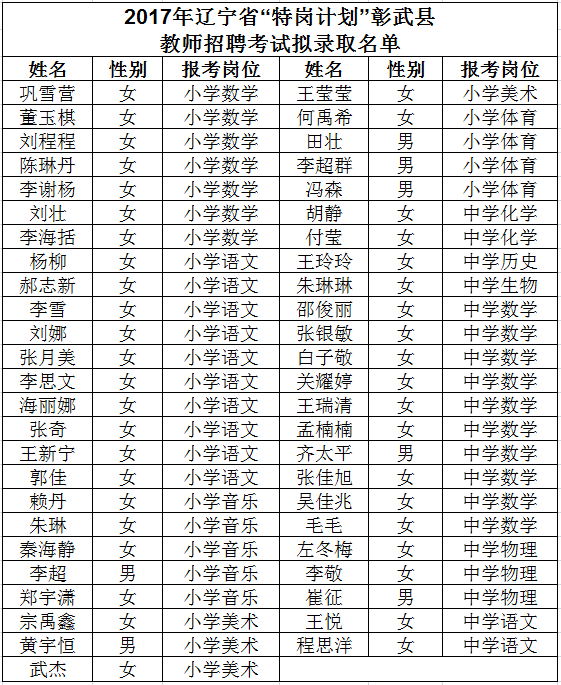 2017年彰武县招聘特岗教师拟录取名单公示[日期:2017-11-16 17:08:22 来源:彰武县教育局 作者:彰武县教育局][阅读: ]
